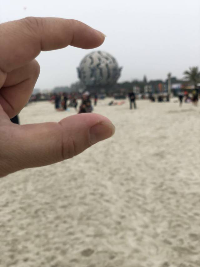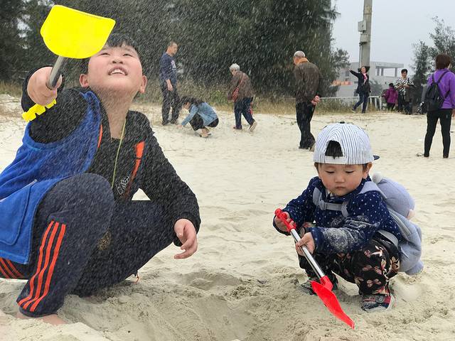 把沙滩上的沙子抛向空中,就犹如一丝银帘挂在空中,美极了。