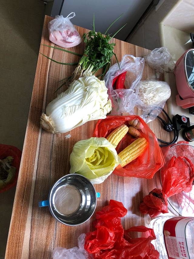 经过一番选购后,我买了许多海鲜,其中有海虾、大明虾、小虎斑、鱿鱼。蔬菜品种也不少,买了这么多的菜,就马上要开启烹饪模式了。