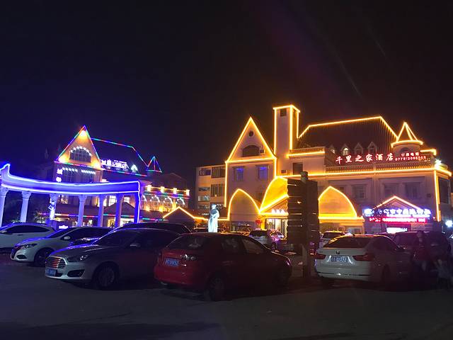 不知不觉已经到了傍晚,天边的最后一片朝霞落了下来。海洋别野群的夜景真美啊!长条的彩灯依附在建筑上,放眼望去,整座别野群灯光闪烁,犹如一架五颜六色的彩虹!
