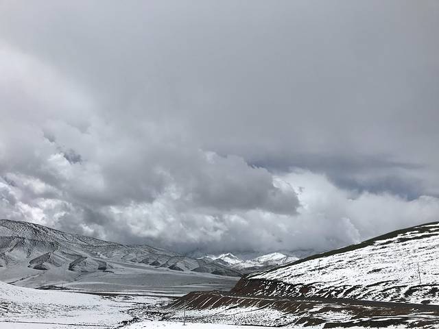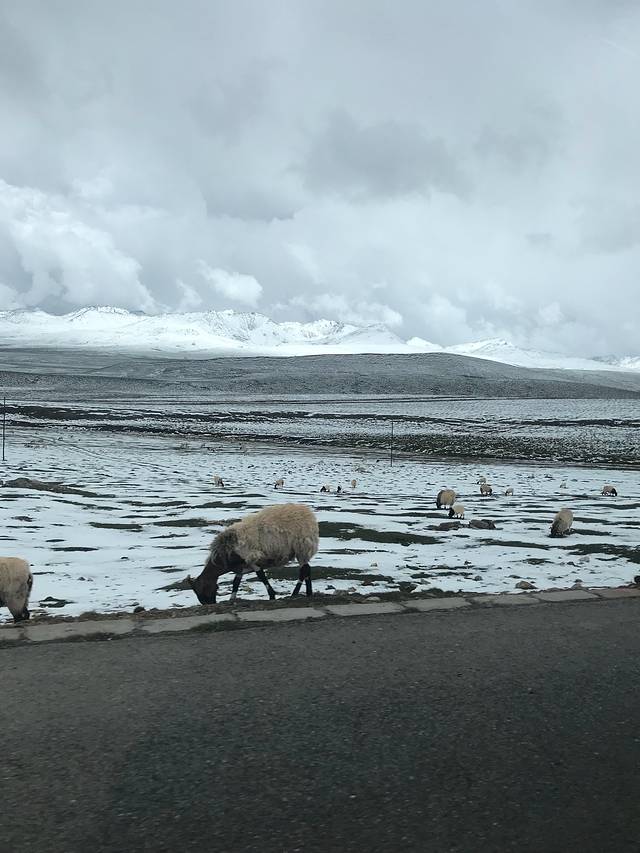 我们比较幸运,前一天青海下了雪,从塔尔寺去拉鸡山的路上感受到了一年四季的变化。远远的看到雪山我们就开始兴奋了,到了雪山脚下更是开心到不行,刚刚在塔尔寺的时候还是晴空万里的春天,到拉鸡山就是飘雪的冬天,好神奇呀。