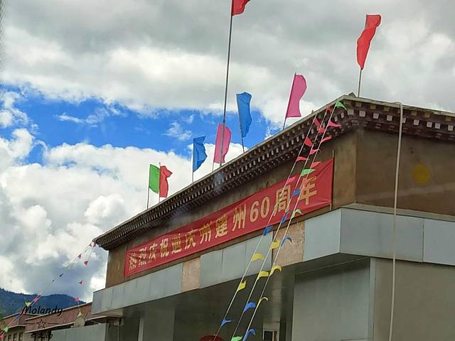 从丽江到香格里拉目前只有一条盘山公路进出,公路只有两车道,盘山路很险峻但风景也很漂亮,政府正在筹建香丽高速,工程看起来很艰难。整个迪庆藏族自治州因为地处高原没有4G网,香格里拉有的地方2007年才通电,只有在县城才有3G网,其他地方的E网就只能收发文字消息。这里很少能看到庆祝国庆节的,大都是在庆祝迪庆建州60周年。