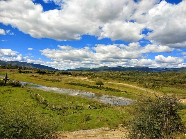藏区是一片神秘的净土,悠久的历史,古老的文化和丰富多彩而团结合睦的民族和民族之间的依存关系又谱写着浑厚诱人的人文景观丰姿; 进入藏区后海拔开始不断攀升,风景明显开始变化,公路两边有环绕的雪山、静谧的湖水、神圣的寺院、辽阔的草原、成群的牛马和淳朴的藏民,谱写着天然的自然景观。这里的天很蓝,云很白,这里离天空又更近了一步,这里离边境线很近很近。