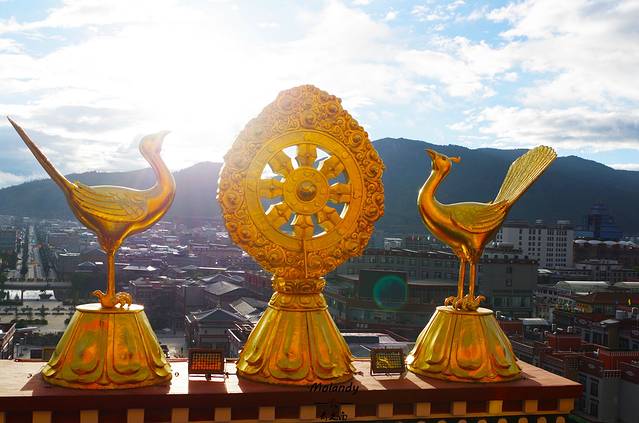 香巴拉时轮坛城耗资近6亿元人民币,2005年开始建设,15年才对外开放,这里是最能深刻体会藏传佛教博大精深的地方,它是目前藏区介绍藏文化及藏传佛教文化较为全面的场所,主建筑中心大楼共11层,一到八层是展览参观的地方。为什么说藏族人有钱,除了他们名贵的藏药,他们也不缺金子,位于八楼的香巴拉时轮坛城,金碧辉煌、规模宏大、工艺精美,还通过了吉尼斯认证,被认定为世界上室内最大的立体坛城,整坐坛城共1177尊佛像全部用纯金打造,内部装藏包括五谷杂粮、奇珍异宝、藏药、经书、及藏区各大寺院的圣物等。藏族人的严守信仰,坛城是他们班禅神圣的地方,一进门手机相机全部都要收好。