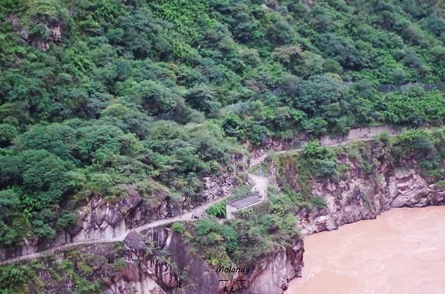 崖边的那条蜿蜒小路,是纳西族马帮茶马古道的遗址。