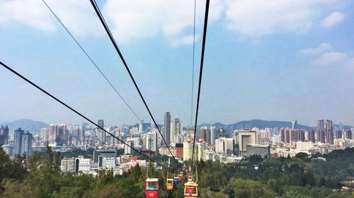 钟鼓索道全程有1公里,票价50元一人,可坐单程或双程,双程40分钟,一头位于万石植物园西侧,另一头位于南普陀寺。