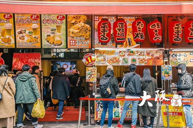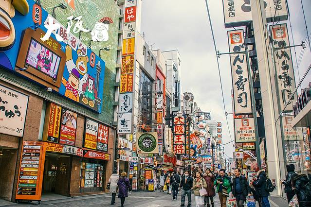 放眼望去满大街全是吃的……药妆店服装店都是国人再逛,然后 大阪 人民全都高高兴兴的在餐馆小吃店门口排队。