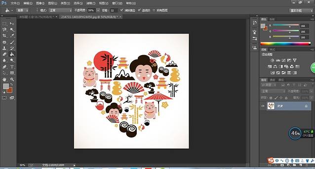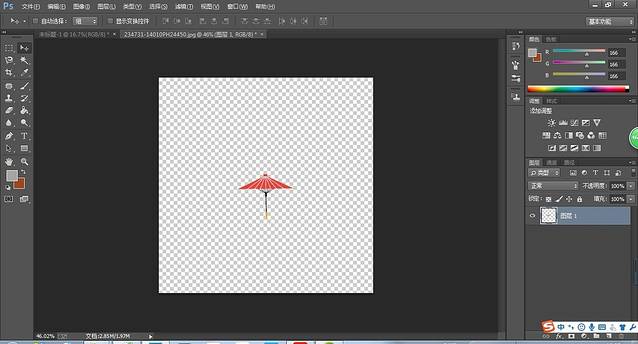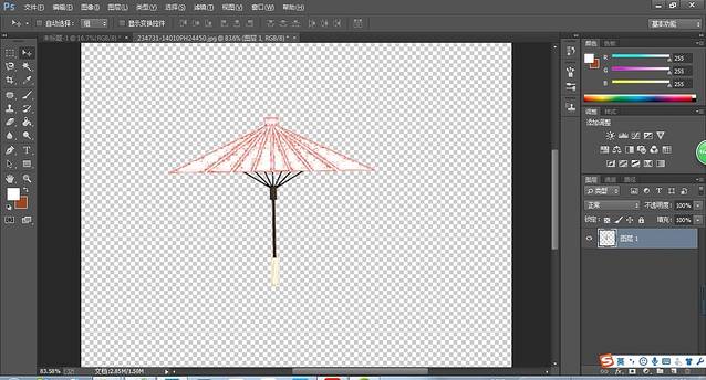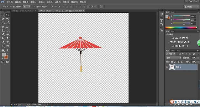 打开网上找到的素材。搜 日本 元素里面就有好多这种图片,选自己需要的保存下来,然后在ps里打开。把图片里的和伞用魔棒工具选中,Ctrl+c复制,Ctrl+v粘贴。然后选中背景图层删掉。
