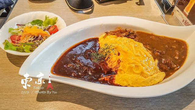 蛋包饭是这里的招牌,价格非常亲民。蛋皮非常棒,国内吃过的蛋皮都特别干,这个蛋皮没有完全凝固,还有柔和的蛋液,茄汁饭粒粒饱满还混着鸡肉粒。我选的牛肉酱和咖喱酱双拼,牛肉酱味道咸香,相比之下咖喱酱就柔和很多,个人更喜欢牛肉酱的味道。