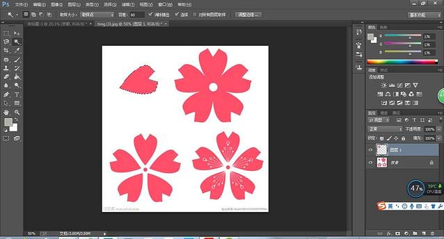 樱花素材同样是网上找图片,在ps中打开,我选用的是樱花瓣,所以把左上角抠出来就好。