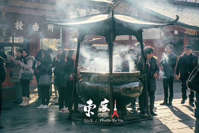 我站在观音堂的香炉前,迟疑了几秒,笨拙的往自己身上撩烟。香炉里的烟带有健康和好运等寓意。旁边一对年迈的夫妇看出了我是游客,笑着给我做示范,听不懂日语的我只能以微笑表示感谢。