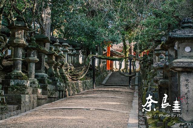 春日 大社 最有名的就是那3000座常夜灯,参道两旁的石灯笼和古树遒劲蜿蜒的树枝,好像走进了古老传说里的暗夜森林。还有偶尔调皮钻进灯笼中间的小鹿,可能是神派来的使者吧。