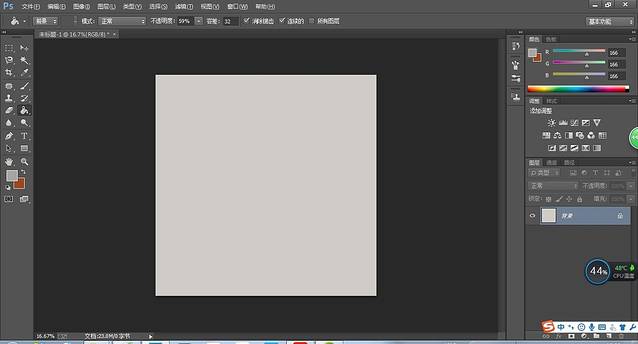第二步:打开Photoshop, 新建 一个100厘米乘以100厘米的图层,填充灰色。这个就是等会做水印的地方。