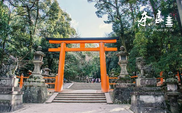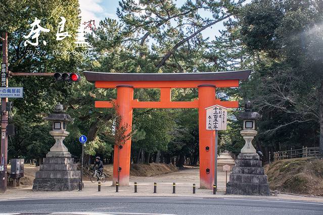 春日 大社 门口的鸟居,穿过鸟居走进参道就能发现小鹿的身影啦。