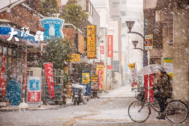 大阪 的天气也真是销魂……下午打算先去海游馆在去摩天轮,进海游馆之前是晴天,出来就阴天了。但是坐上摩天轮之后就半晴半阴,摩天轮转到一半又开始下雪。下来之后从小雪变鹅毛大雪,之后又晴天飞雪……