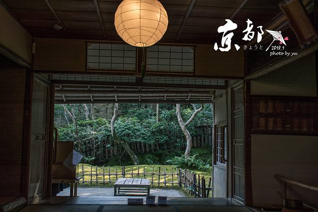 从常寂光寺走到祗王寺的这段路上人已经不多了。深冬午后,穿过阴翳的树林,沿着错落有致的古墙行走,尽头藏着的竹篱柴扉就是祗王寺了。其实说它是寺并不准确,它更像是一个清修园林。幽幽苔藓,郁郁竹林,参天古树,斑驳的石灯笼,掩映在草木中的木庵,还有里面挂着的暖黄色和纸灯笼,心中顿生宁静。院内人非常少,我来的时候又是一个人包场,之后就只有一对年轻的 日本 小情侣进来。