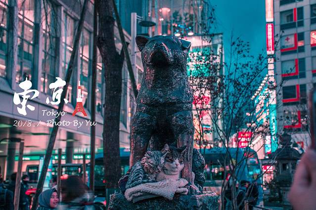 忠犬八公的小雕像被一块块亮晶晶的手机屏幕围得水泄不通,每个人都做着矫揉造作的表情,故事听没听过不重要,Instagram上那张定位“涩谷”的照片才是最重要的。八公雕像下面不知为何放着两只喵星人,它们面对人群的疯狂一直眯着眼睛,连正眼都没看过,满脸写满了嫌弃。