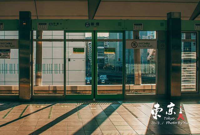 新桥站换乘百合海鸥线的长廊两侧全是大型落地玻璃,下午的光影特别梦幻。我不禁赞叹, 东京 还有这么漂亮的地铁站。