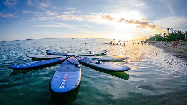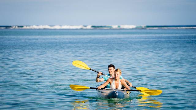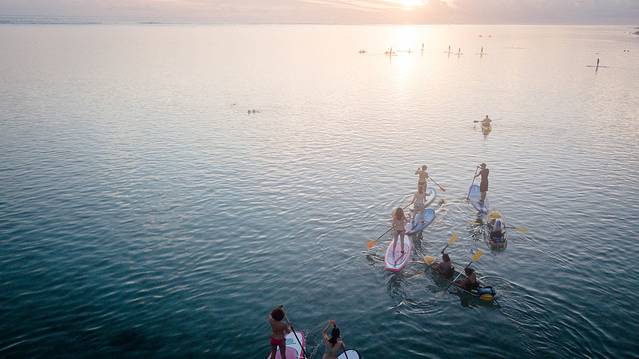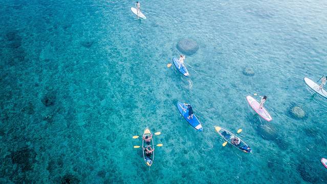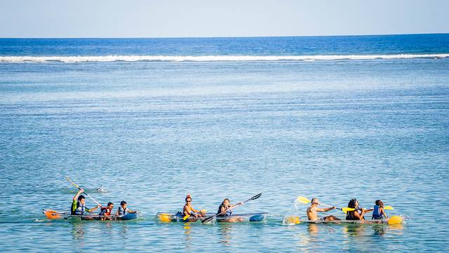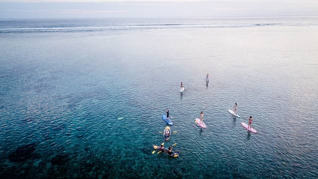 不过即便如此,倒也没有影响到它的魅力。圣吉尔泻湖在大海巨浪的映衬下显得那么的平静,这里的海浪更加温柔。走在沙滩,感受轻柔的海风,踏着清澈的海水,你会见到水中正在带着孩子浮潜的家长,你会见到正和爱人一起体验的皮划艇,你会见到正在玩立式单桨冲浪的异国美女,你会见到正在玩水中排球的型男。 这里似乎到处都洋溢着的幸福的味道,但这却和我眼中的大海不同。