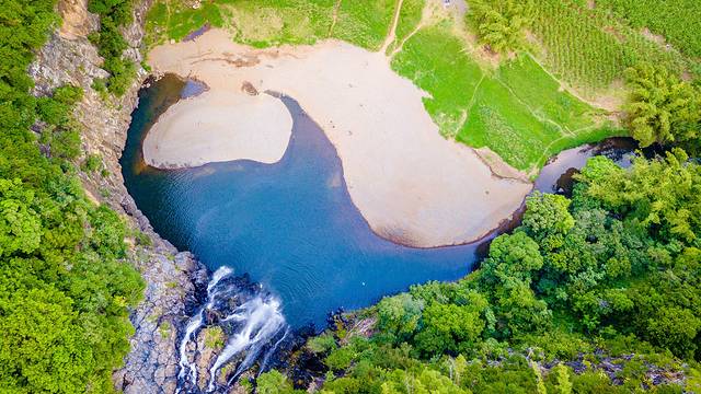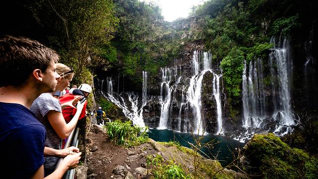 留尼汪可以说是一个盛产瀑布的岛屿,大大小小的瀑布数量惊人,不过即便如此,“大家来”也是其中较为知名的一个,不论是它的水量,还是它的面积,在众多瀑布中都属于名列前茅的。而我们今天的溯溪的第一道关卡,便和它有关。