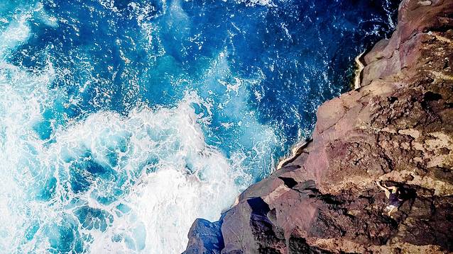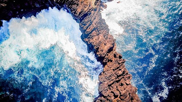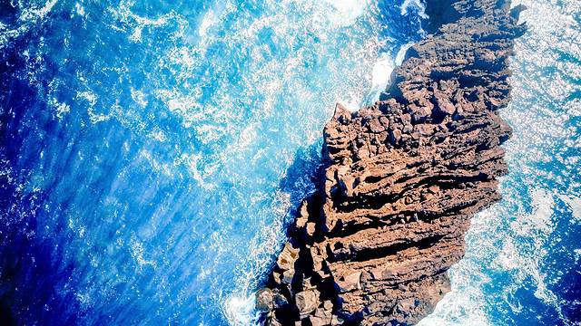 悬崖下波涛滚滚,石壁仿佛在吞噬着巨浪,海面就像燃起的蓝色火焰,极为震撼。海浪在每一个时间段里呈现的魅力都是不一样的,如果你能够迅速捕捉到海浪每次翻滚的状态,那么这些或猛烈、或温柔、或一往无前的海浪一定能够解答你心中的疑惑,治愈你内心的创伤。