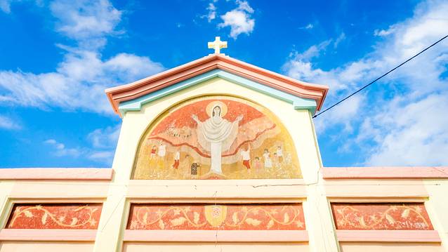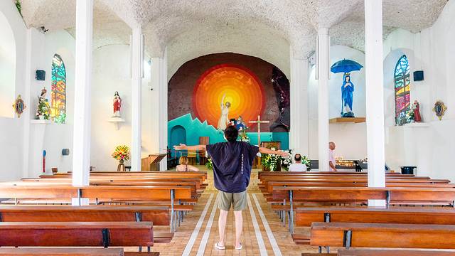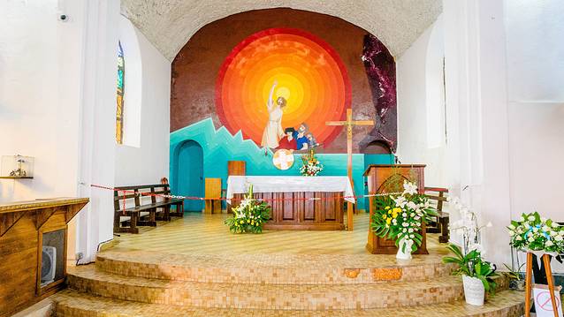 进入其中你会看到一个非常特别的存在,它就是教堂右侧的一个圣母像,特别之处就在于她可能是全世界唯一个打伞的圣母像。其实关于提及它就不得不说一下留尼汪的另外一处地方,熔岩之路。