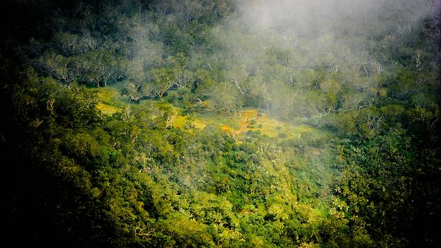 在往来玛法特冰斗的路上有着一片罗望子森林,罗望子树如同被风吹乱的发型,各式各样的形状肆意生长在山间。