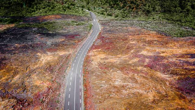 每一次火山喷发,流下山的岩浆都会经过一条路,而被经过的这条长长的公路便被当地人称为熔岩之路。如果你一直沿着公路向前开,你会发现周边的地貌一直在变化,这是因为它们的年份也都不一样,并且每一段公路的名字前都会加上xxxx年熔岩之路。