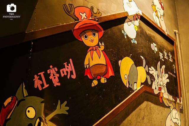 老董家里面布置的特别可爱,墙壁上各种动漫人物,也写了些济南方言,特别亲切有趣。“杠赛咧”为很有趣的意思~