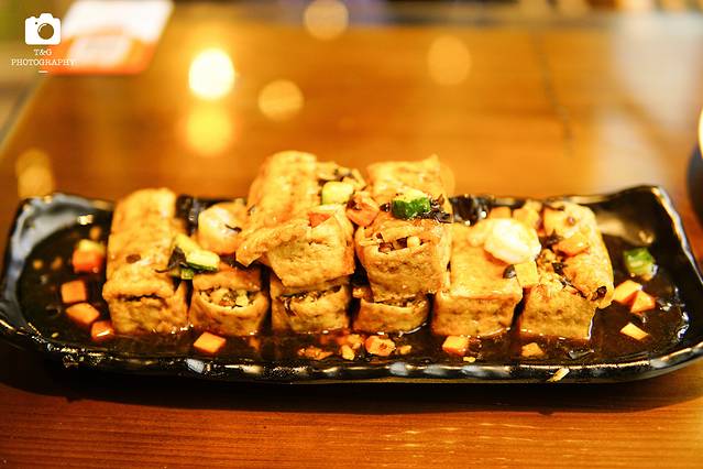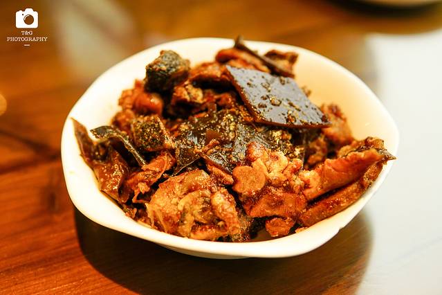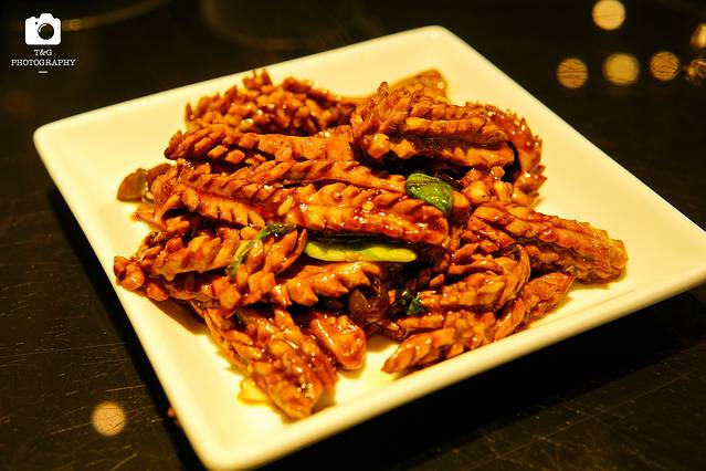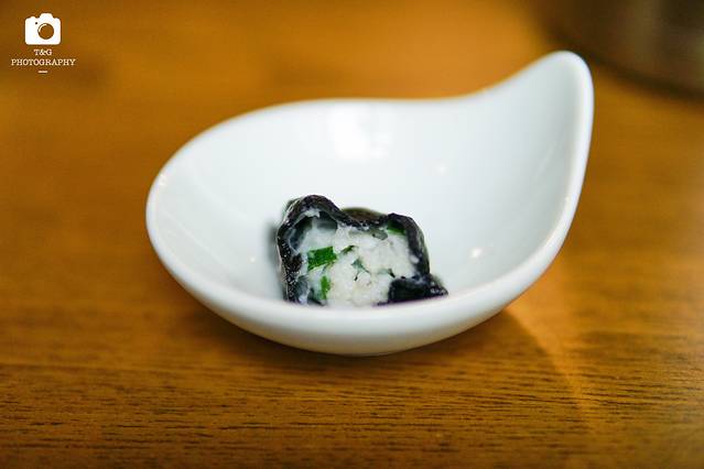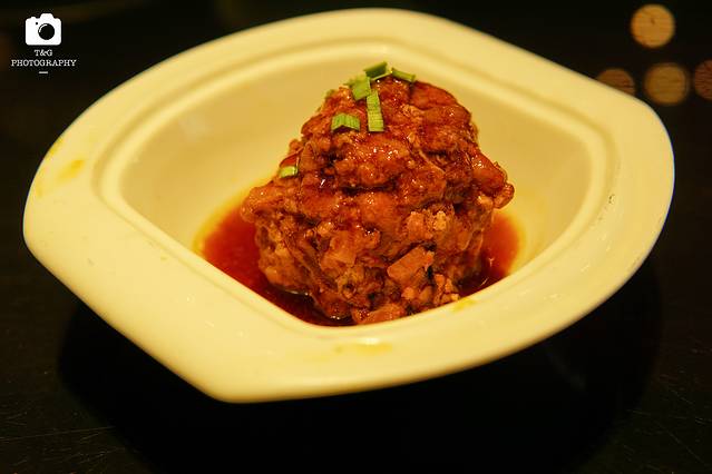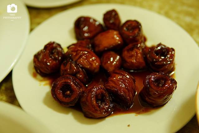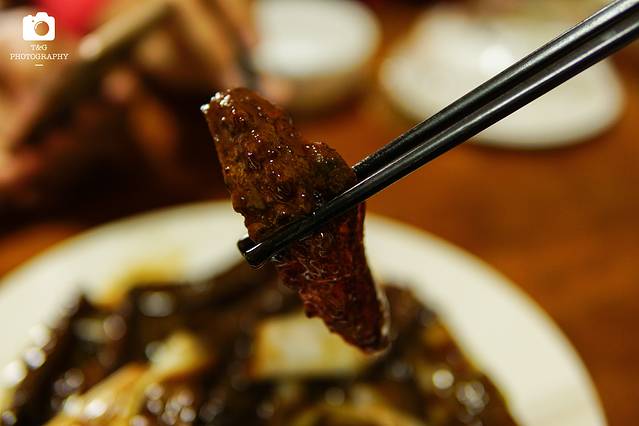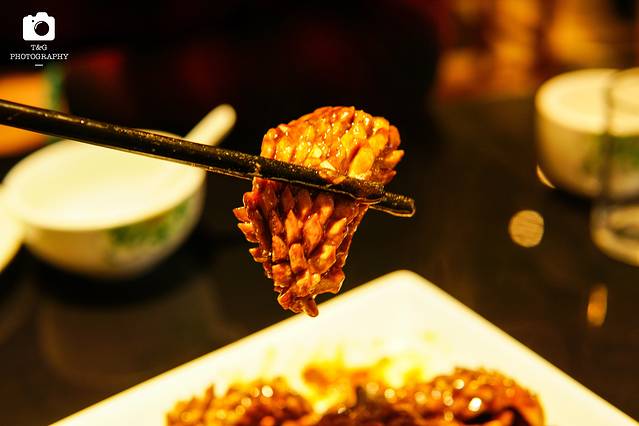 九转大肠上桌,看颜色应该是咸带着酸甜口的预设放入嘴中,结果入口除了大肠滑腻腻的口感和同预期里的酸甜味对上味蕾之外,竟然品到了一丝微苦。