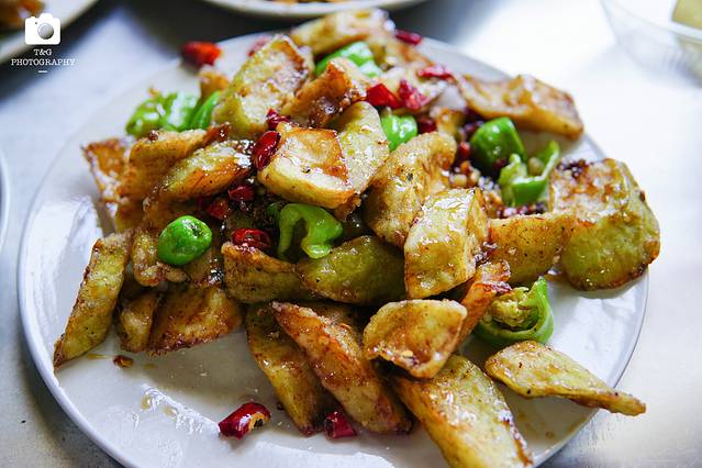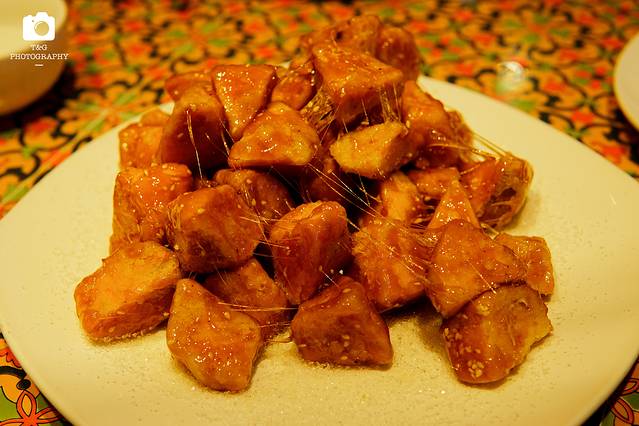 拔丝的菜有很多,大概能切成块状的,都可以做成拔丝,除了我们点的拔丝地瓜,还有拔丝香蕉、拔丝苹果、拔丝山药等等。这依然是一道火候菜,炒糖色刚好要炒成拉丝,颜色清黄澄澈。最重要的是,上桌后,必须趁热吃,等凉透了,可能得拿刀来剁着吃了