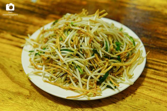 腰花经过去腥,又加入了带葱蒜的油和调味料的卤汁大火爆香迅速出锅,这样就很好的保留了鲜嫩的口感,味道上,咸中带着一丝丝甜和一丝丝酸,但没有哪一味特别突出,每一种味道都刚刚好,一盘子很快就被打扫干净。