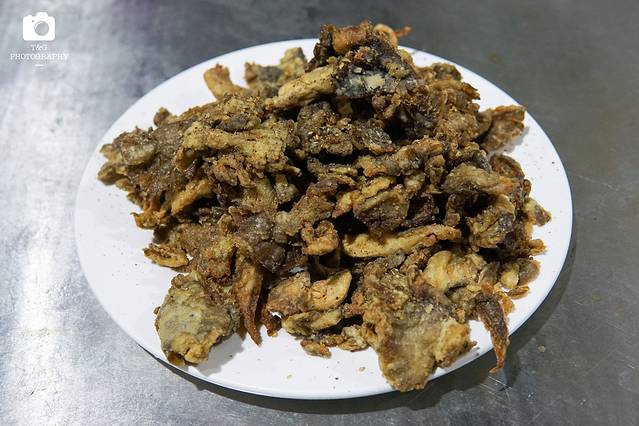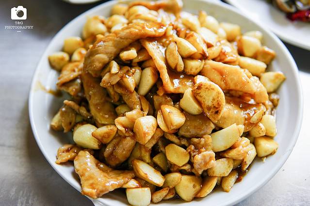 鸡胗和猪肚切丁,滚油爆炒,翻炒些些旋即起锅,多一分老,少一分生。本是极有韧劲极难熟的二种内脏,却成了快手菜,也是神奇。端上桌脆脆的,特别适合佐酒闲谈。