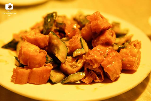本以为是不是这家炒糖色炒的过了点儿,回来后仔细查了下,原来九转大肠,应该算是鲁菜里真正的五味调和的典范了,正宗的九转大肠,除了咸、甜、酸做主味,还有一丝丝隐隐的辣以及就应该带着点苦!可惜吃的时候孤陋寡闻,还评价道这家不够地道。