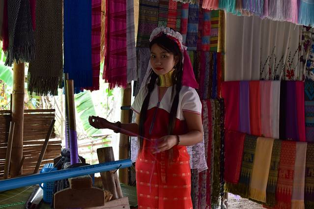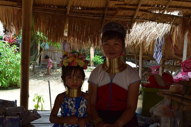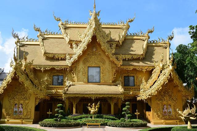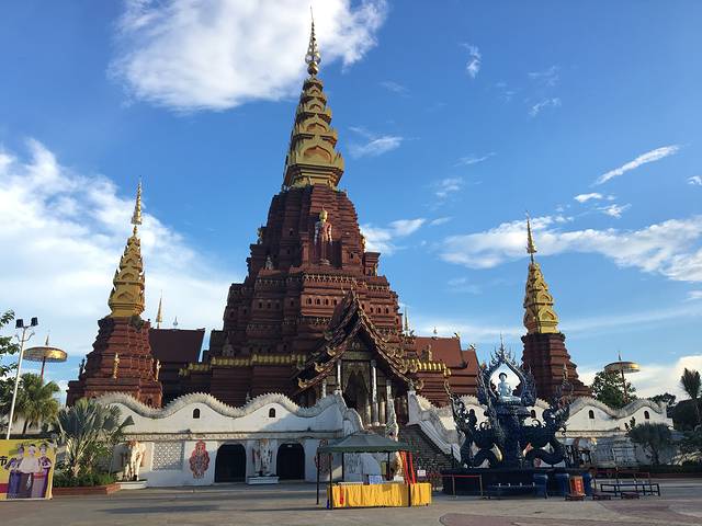 前一天青旅订了一日游1000泰铢+300泰铢的长颈族门票。白庙黑庙体会从天堂到地狱。远远看着就像一座白色瓷器。实际是白色涂料和玻璃亮片造成。