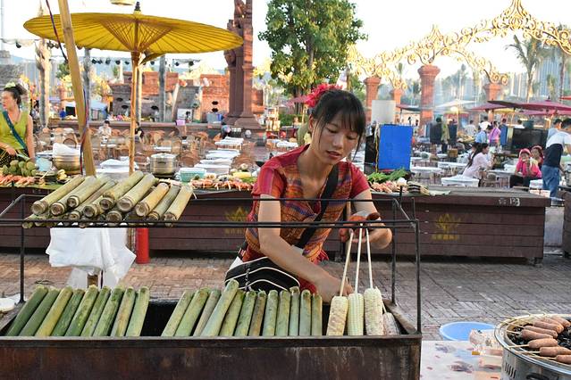 夏天的景洪直接把我们逼回房间。一出门就止不住流汗。早上早起看了热闹的早市。