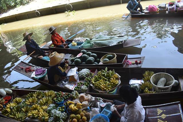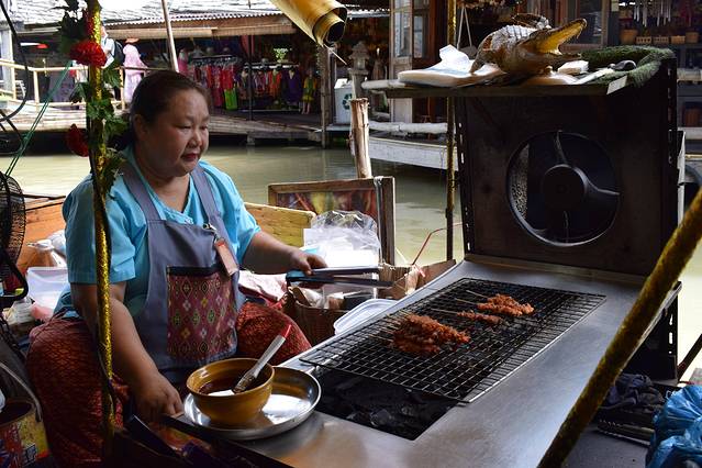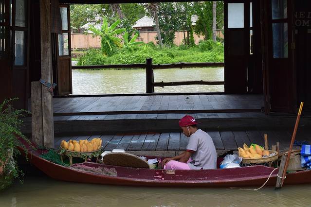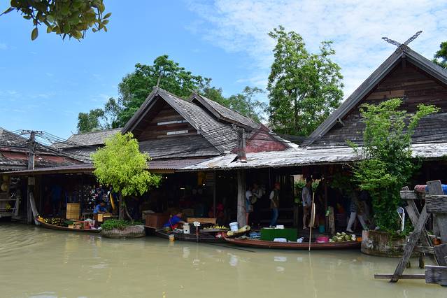 四方水上市场,实在被坑进去,就是一条购物街还得买门票进去。 门票相当于40RMB,贼贵。如果想去水上市场建议曼谷的丹嫩沙多水上集市。出发的时候被骗进车,直行开一段路让我们付钱每人20泰铢的上车费。把我们撂下车让我们去对面坐车。我们去对面拦车,跟司机说去水上市场还讲价说100泰铢两人,直到返回时因没有愿意100泰铢能让我们返回旅馆的车,随便在路上拦下车,司机说是只开直线,于是看着车跟着导航走,只要一偏离马上下车,跟着别人付一样的钱每人10泰铢,才发现我们竟然被坑了。上车根本不需要和司机说任何地点。因为司机只开直线。也只需付上车费10泰铢。