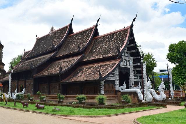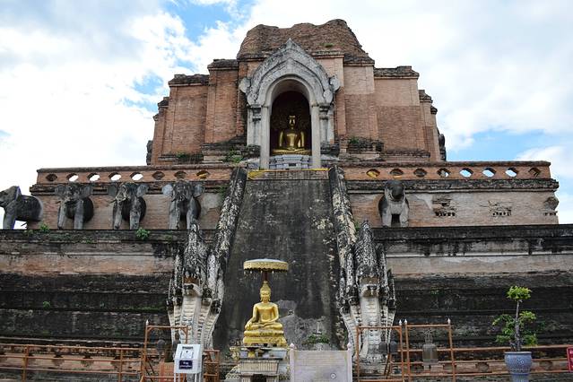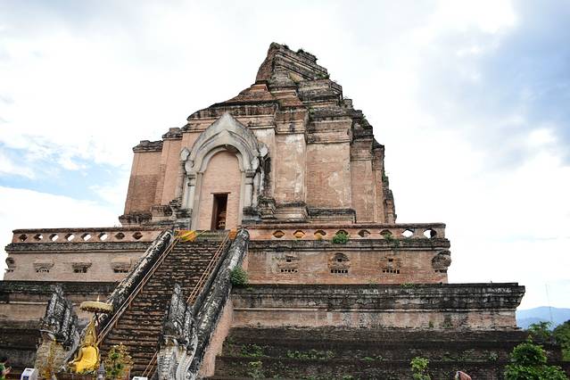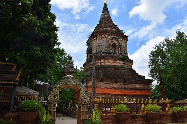 契迪龙寺又称大佛塔寺,始建于1411年,是清迈市内六大寺庙中最大的寺庙,与帕辛寺同为清迈等级最高的寺庙。寺庙属于典型兰纳(古泰族王朝)风格建筑,由主殿、小佛殿、僧房组成,寺庙门口点缀着蛇和孔雀的装饰,大佛塔是寺内最古老的建筑,1545年清迈大地震后,佛塔的尖顶一夜之间塌毁,所以现在所见的佛塔为平顶。古佛塔只有一面修有台阶,其他三面皆为斜坡,游客不能登塔。