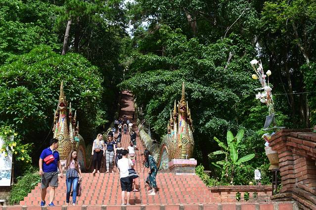清迈,一切都不如所愿,先是坐车(3小时,票价166泰铢)一路晒过来,订了一晚的旅馆就像许久没人住过的招待所,住一晚马上又换了一家中国开的青旅,萧条得简直了,要不是还有人的话活生生像个鬼屋,地板脏兮兮还拖鞋,钥匙给了我们就完了,连起码的服务把我们带到房间都没有,如此打发。一进房间,冷气十足,带点异味,就像个冷宫,再看床铺,小小的房间挤了两大张上下床,一个床还接着空调水。出师不利,忍耐一晚再搬。住宿连续换第3家4次床位,状况还是差点,第一次住混合间密闭空间夹杂着味道。室友倒是都挺好,认识一个礼貌绅士的新加坡人。