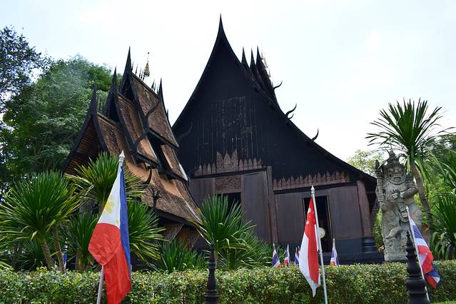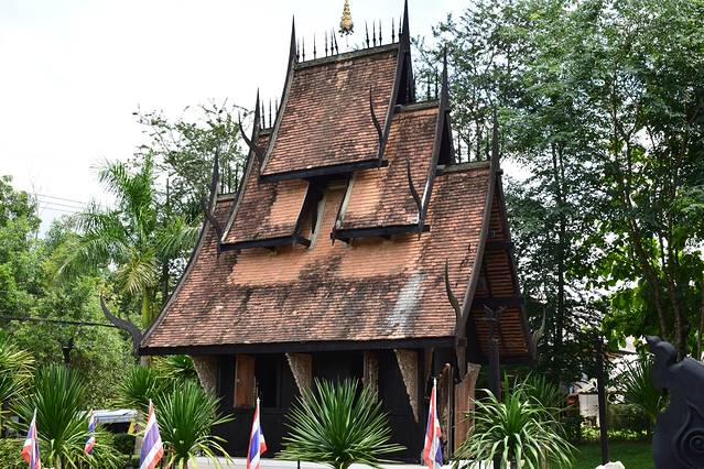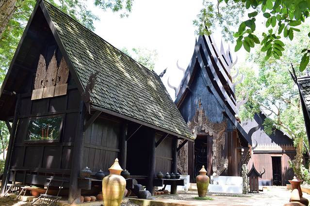 代表地狱的黑庙,整个园子都是木建筑。它的创造者是泰国著名艺术家:Thawan Duchanee。主题是地狱及死亡。展品包括数千年前的兽骨,原始民族的猎杀工具,各式各样的古代工具、古董和标本等。