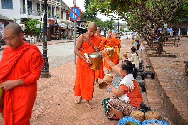 早上5点多赶去看清晨布施,真是一道美景。