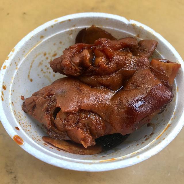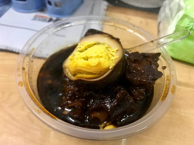 以前10元/份,现在涨价至12元/碗,黑漆漆的一碗,三块猪脚一只蛋。