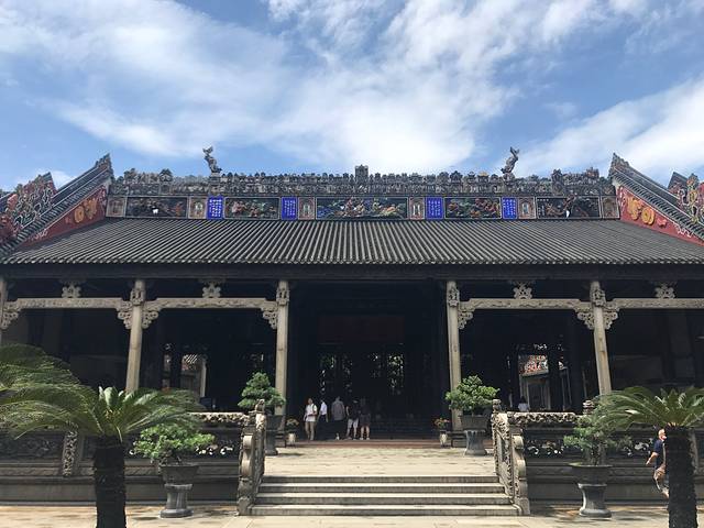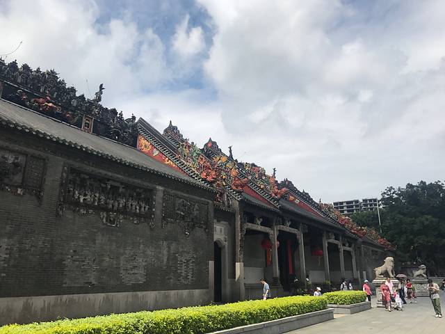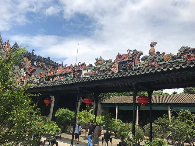 典型的广东民间宗祠式建筑,青砖围墙,外封内闭开放,坐北朝南有前中后院,占地面积达到了上万平方米