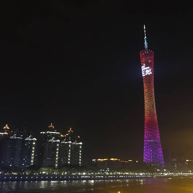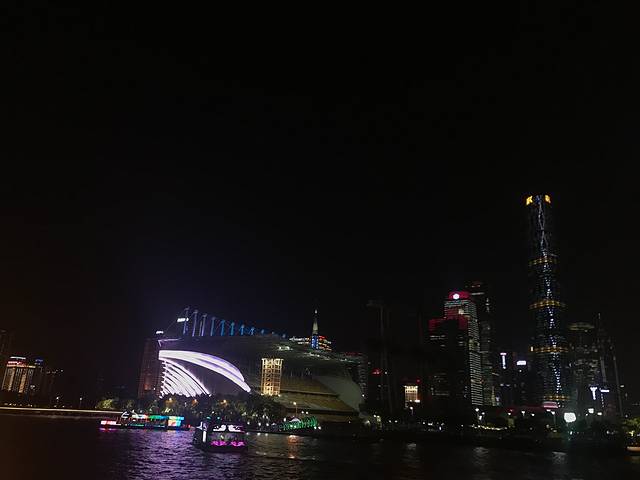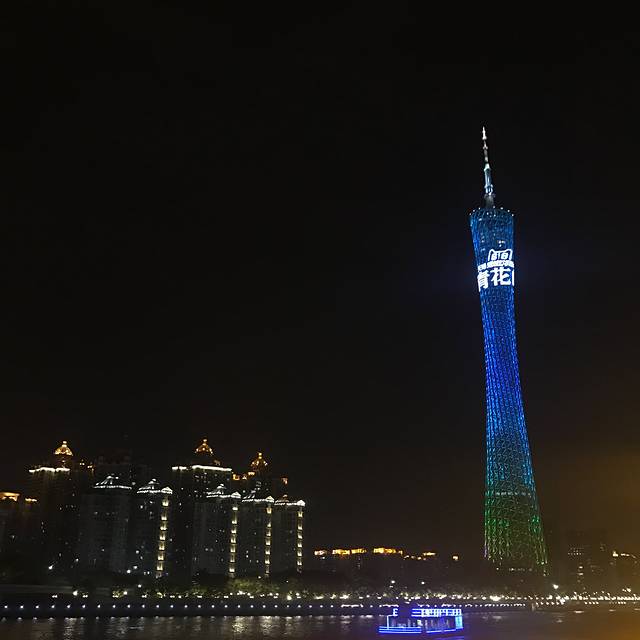 在邮轮上一边吹着风,一边看着两岸的灯光秀