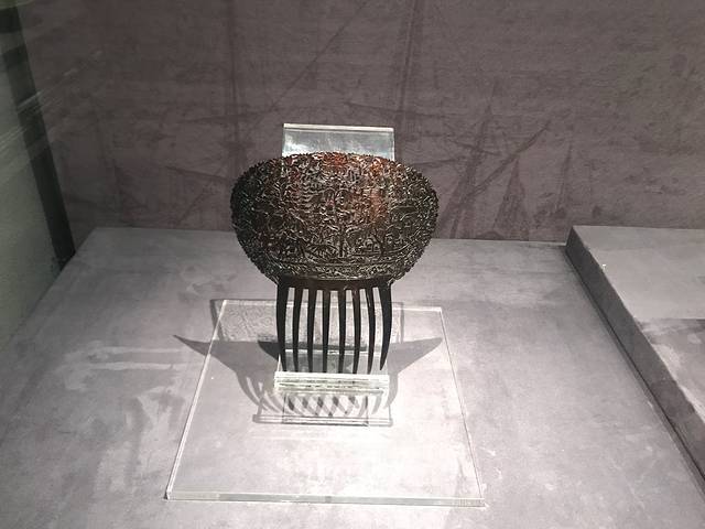 玳瑁雕柳廷人物纹栉:玳瑁是海龟科动物背部的麟甲