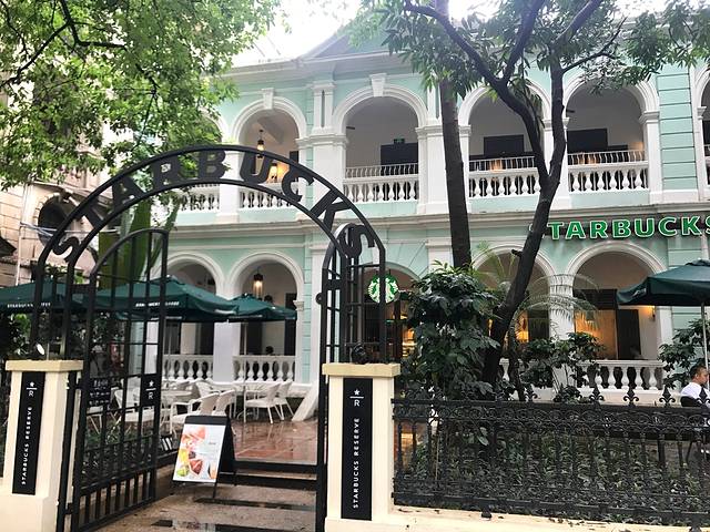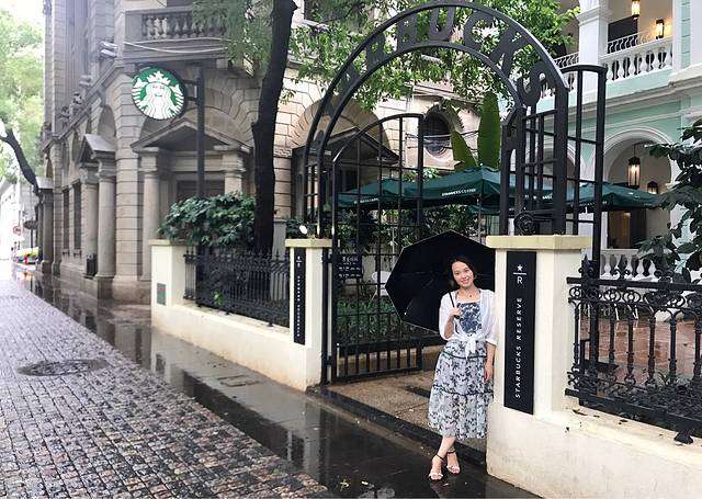 这是广州最美星巴克,蒂芙尼蓝色的外观,在沙面的各式风情建筑中独树一帜。很开心的是,参加了星巴克的咖啡试泡课程。