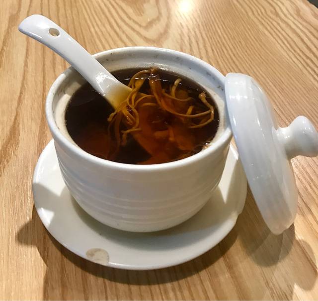 这是全广州最有名的炖汤店,连明信片上都有它的印记。以前你不知道不要紧,以后你要来广州一定得喝这家汤。闻:竹丝鸡的鲜味里有淡淡的椰香压住了轻微的药膳味,尝:先入为主的是舌尖感受到了甘甜直至牙齿体会到有股椰汁清爽的感觉,最后整个胃里充满了鲜美的快感。最后四个字:名不虚传!