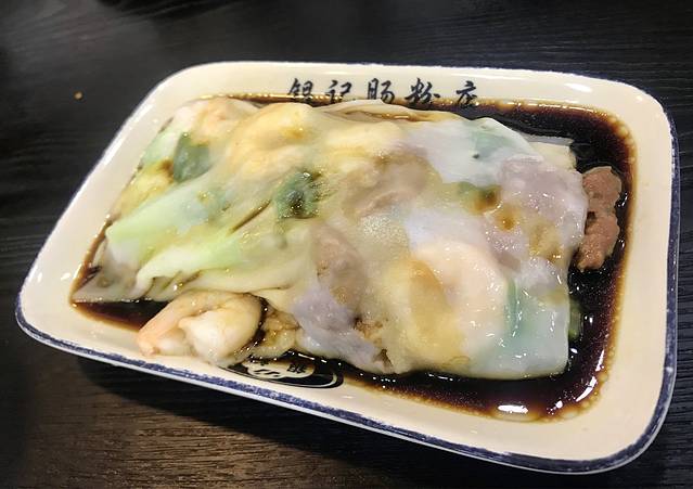 肠粉老店银记家的虾仁牛肉肠粉,一定要吃,料足味美。但,银记已经被连锁加盟捆绑了,听老人家说口味大不如前了,有时间的人一定要去吃西关那边的国强肠粉,比银记还要好吃。