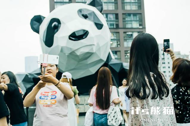 经过15分钟的骑行我们到达了红星路步行街,站在IFS楼下抬头一望,便能看到那只被人们拍成网红的熊猫。