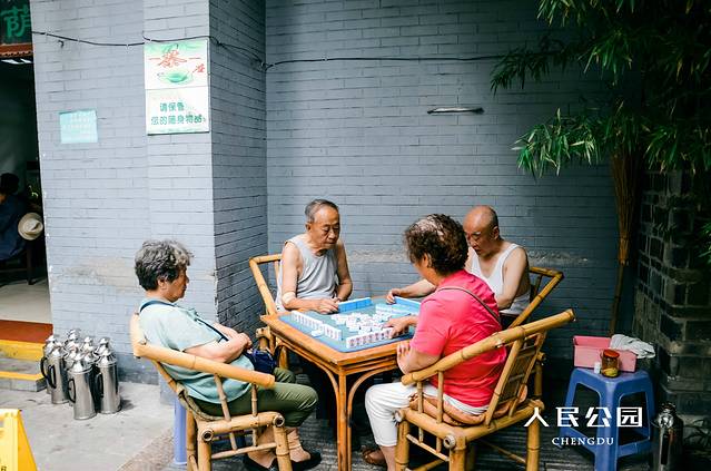 从文殊院离开一路上随处可见成都小吃和成都人民休闲的生活,返回地铁重回天府广场转乘2号线到达人民公园站下车,从小南街出口走出便是人民公园小南街那道侧门。