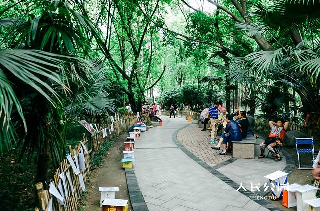 人民公园里最著名的便是鹤鸣茶园,叫上一壶茶,发发呆或和朋友聊聊天,体验一下成都人的慢生活,那一刻你会觉得压力释然。炎炎夏日躲在茶园里,喝着盖碗茶,摆着龙门阵,卖豆花的小贩,掏耳朵的师傅穿梭其间,你会感叹成都人的生活是如此安逸,悠闲。